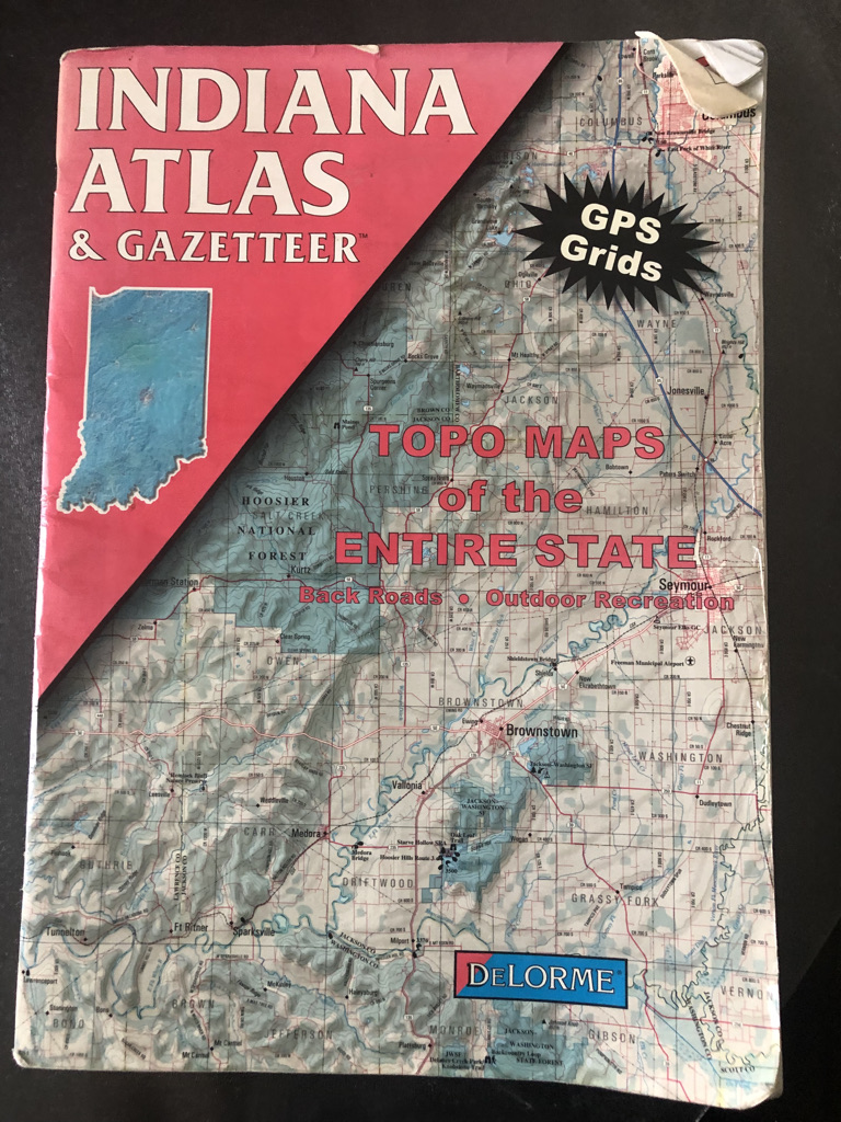What I had brought to the room in order to check out travel routes through upstate New York was not an atlas of the United States at all! It was my dog-eared Indiana Gazetteer. A collection of local topographical maps that included every street and back road in the state of Indiana – at least in 1990! This Gazetteer was over twenty years old. It had been a treasured friend when seeking shortcuts in my home state. Well worn, I had used it often. As I leafed though the pages, memories of trips in Indiana came to mind.